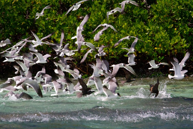 And the bait! I have never seen so much, with many bays dark due to millions of small minnows. The Pelicans and Terns were all over them, as were Jacks, Tarpon, and as mentioned before, the Bonefish. This is the only place in the world I have ever seen Bonefish accumulate around the beaks of Pelicans in order to steal baitfish spilling out of the bird’s pouch! True story.