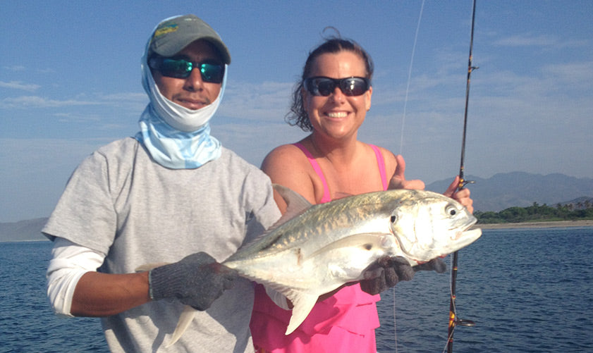 In early 2016, we traveled with friends to a small lodge in a tiny fishing village between Zihuatanejo and Acapulco on Mexico’s south Pacific coast. In addition to watching the Super Bowl on the patio behind the local convenience store with the owner and his family, we had some exciting fishing. While several in the group were set on landing a billfish on fly gear, I’m not that much of a purist. I like to catch fish, and if it’s on conventional tackle, I’m fine with that. In fact, on our first morning out, I landed my first ever sailfish in under an hour from when we put our baits out. This was fishing out of super pangas, not cruisers, so exciting to play and land fish in those vessels. Over two days of fishing, my wife and I combined to land 5 sails and we lost a few others. When the captain from one of groups’ other boats radioed to check on how we were doing, our captain replied that we were catching fish, because we were “using real hooks!” In addition to the billfish action, we spent an incredibly fun morning landing dozens of jack crevalle just outside the breaking surf along an unspoiled stretch of palm-fringed beach. What a setting! Lots of doubles and sometimes we even had triples on the lines. That morning, I had my only shots to date on another bucket list fish – the beautiful roosterfish. My heart was pounding as the guides were yelling “rooster!” when I was retrieving my big topwater lure. Alas, it was not to be.